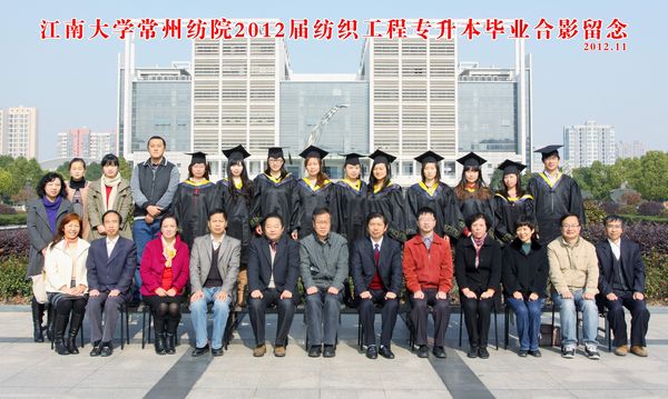 2012年11月18日,在常州纺院纺化系会议室,隆重举行了江南大学常州纺院函授站2012届纺织工程学生专升本毕业典礼。 参加毕业典礼的领导有江南大学继续教育与网络教育学院狄济乐副院长、常州纺院继续教育学院刘建平院长、纺化系陈建华书记等领导,部分2011届、2012届纺织工程专业专升本毕业生及部分老师代表。 会议由纺化系刘慎副主任主持,纺化系党总支陈建华书记首先发表毕业致辞,他热烈祝贺全体学员圆满完成两年半的本科学习,殷切寄语毕业生们树立终生学习的理念;常州纺院继续教育学院刘建平院长通过给同学们讲三个亲身经历的故事,告诉同学们要树立远大理想,并做好自己的人生规划,这样才能持续前进、不断发展;江南大学继续教育学院狄济乐副院长代表江南大学继续教育学院发言,勉励学生把今天的毕业作为人生新的起点,把所学到的知识更好地应用到工作中去,努力工作,不断创新,发挥自己的聪明才智,努力为社会多作贡献,创造自己的新生活。并为毕业的学生颁发了毕业证书、学位证书。 毕业生代表袁迪回顾了两年半来既要做好自己的本职工作,又要利用业余时间刻苦学习的酸甜苦辣,她感谢母校的辛勤培育和老师的关怀指导,表达了对母校和老师的依依不舍之情,并表示在今后的学习工作中将会用实际行动和优异成绩向母校和老师汇报。 会议现场始终洋溢着温馨、喜庆、感激的气氛。会议结束后,师生合影留念。 (成教部)