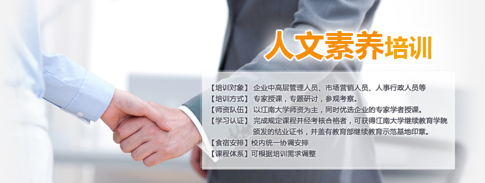 | 个人素质提升课程 | 学习素养与幸福人生、老子的智慧与现代生活、西洋音乐欣赏、吴地文化溯源与解读、心理健康与幸福心理、中外电视艺术发展史、商务礼仪等 | 市场营销人员、人事行政人员、企事业中高层管理人员 |